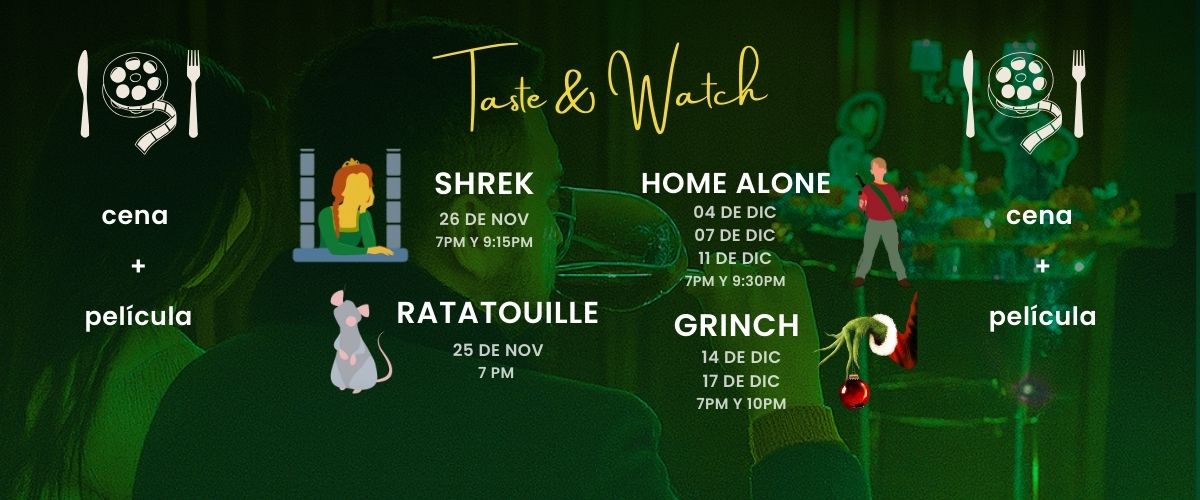 Conoce Taste & WachSumérgete en los sabores de tus películas favoritas con esta función de cine acompañada de una cena de 6 tiempos inspirada en la película.
